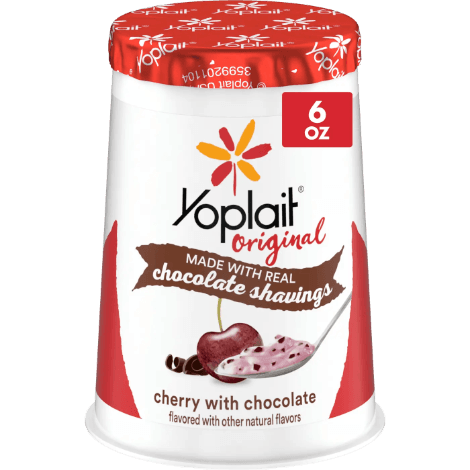 - CONTAINS: One 6 oz yogurt cup of Yoplait Original Raspberry with Chocolate Low Fat Yogurt