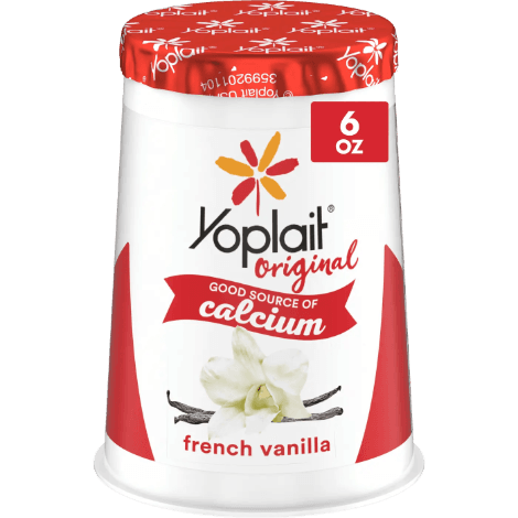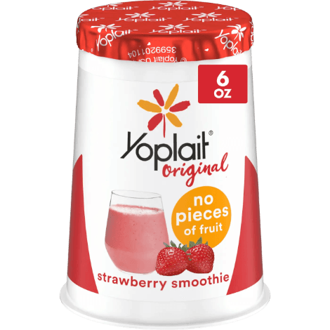 - One 6 oz yogurt cup of Yoplait Original Strawberry Smoothie Low Fat Yogurt