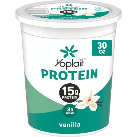 - CONTAINS: One 1 lb 14 oz tub of Yoplait Protein Vanilla Yogurt Cultured Dairy Snack
